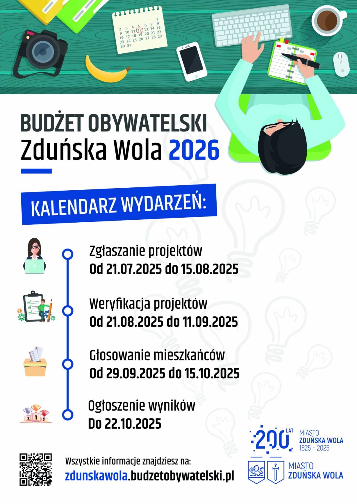 Mieszkańcy Zduńskiej Woli mogą się już przygotowywać do składania wniosków do Budżetu Obywatelskiego Miasta Zduńska Wola w roku 2026. Propozycje będą przyjmowane od 21 lipca. Do wydania będzie 1.250.000 zł.