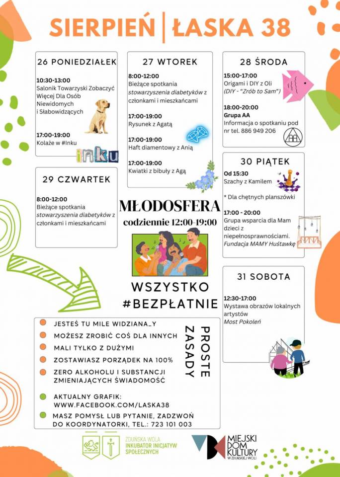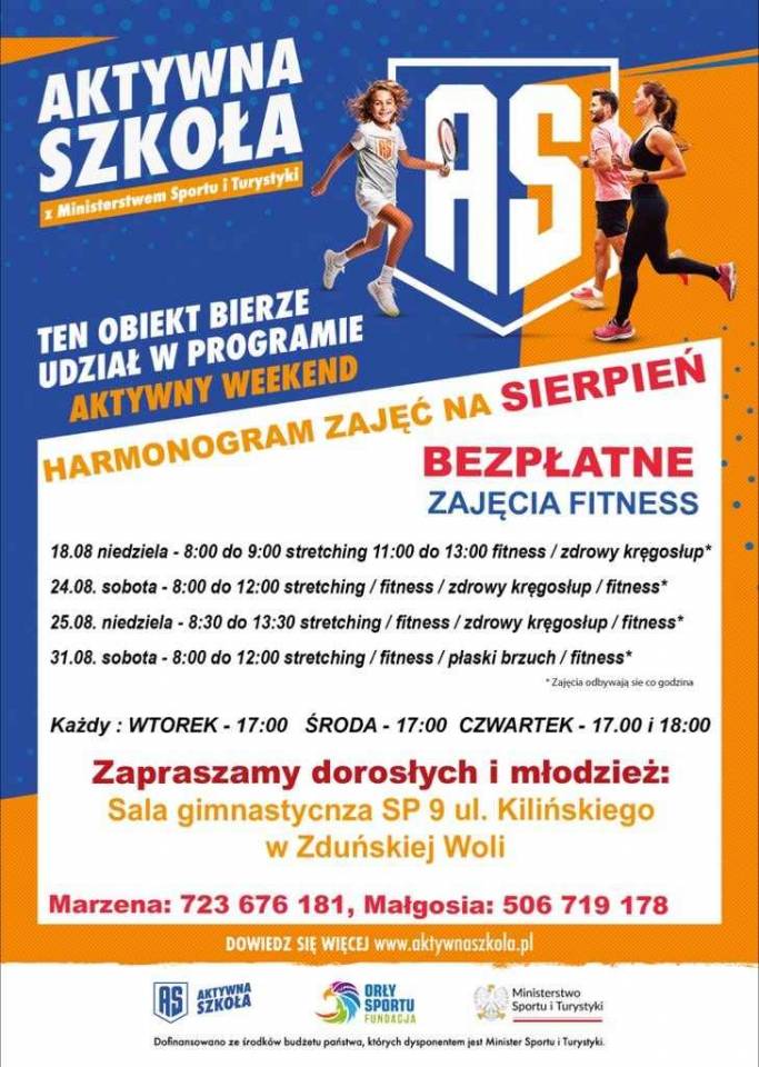Harmonogram zajęć na sierpień dostępny jest pod linkiem https://zdunskawola.pl/sport-i-zdrowie/ w zakładce pn. Aktywny Weekend https://zdunskawola.pl/sport-i-zdrowie/aktywny-weekend/