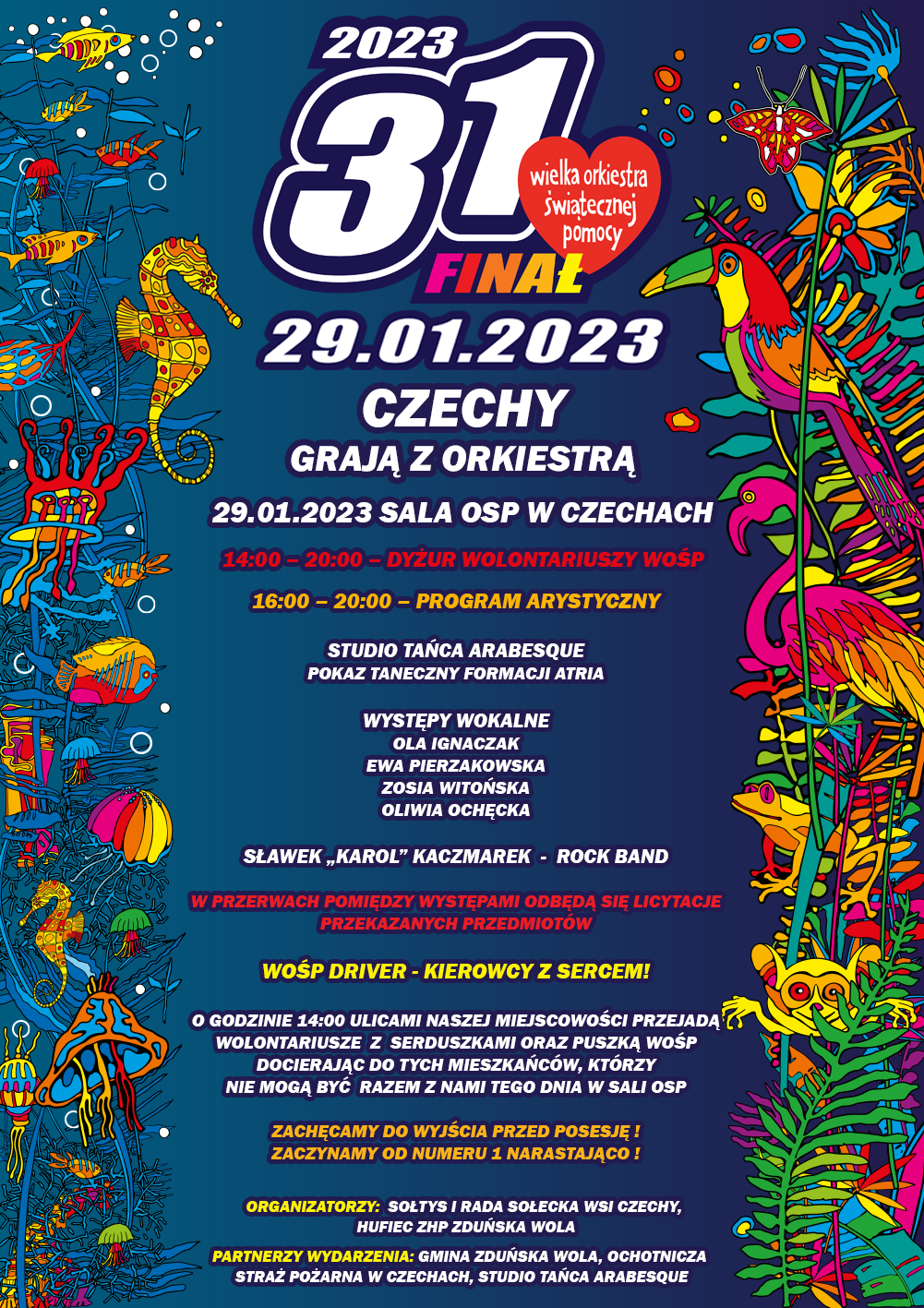 14:00-20:00 - dyżur wolontariuszy WOŚP 16:00-20:00 - program artystyczny