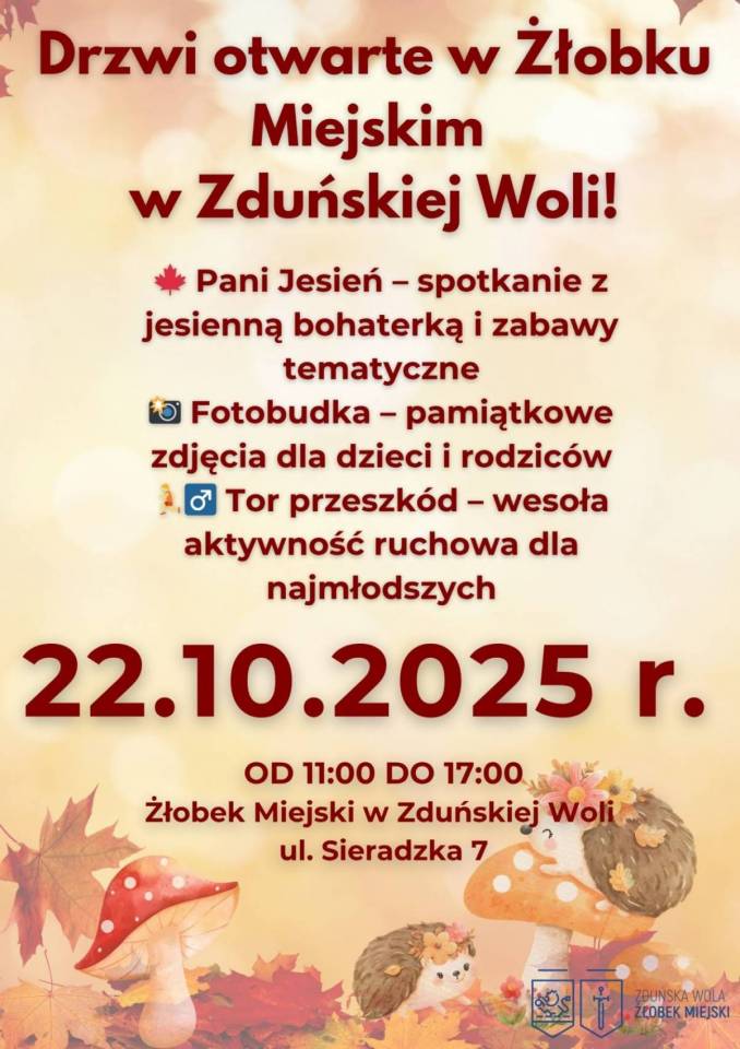 Już w najbliższą środę, 22 października, rodzice i opiekunowie małych dzieci będą mieli wyjątkową okazję, by osobiście zapoznać się z nowo powstałym Żłobkiem Miejskim w Zduńskiej Woli przy ul. Sieradzkiej 7. W godzinach od 11:00 do 17:00 placówka otworzy swoje drzwi dla wszystkich zainteresowanych w ramach dnia otwartego.