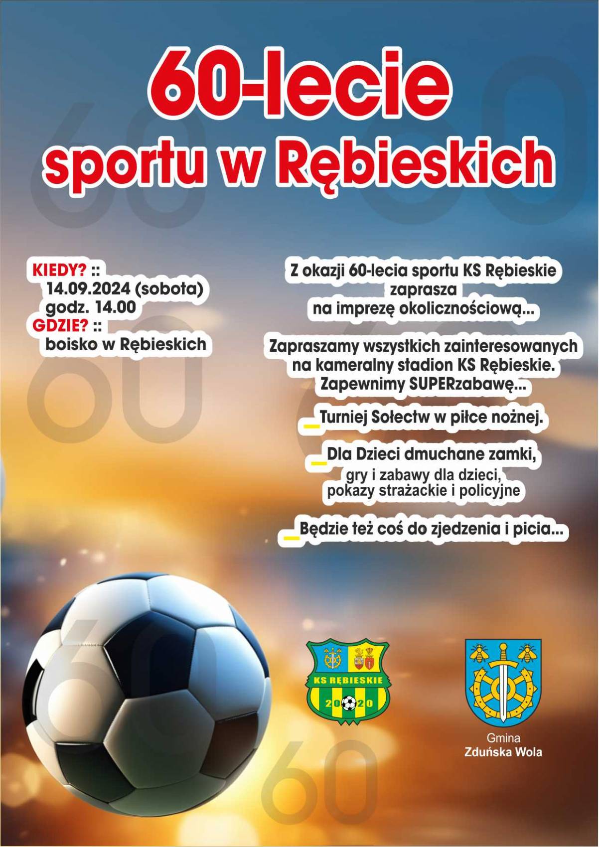 W sobotę, 14 września odbędzie się 60-lecie sportu w Rębieskich.