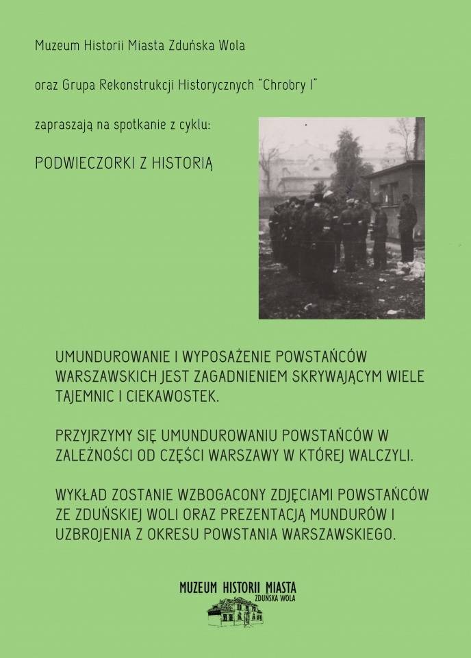 Tego samego dnia o 18.00 w zduńskowolskim muzeum odbędzie się spotkanie z cyklu „PODWIECZORKI Z HISTORIĄ", pod tytułem „Powstaniec Warszawski – czy zawsze w „panterce" i ze STEN-em?"