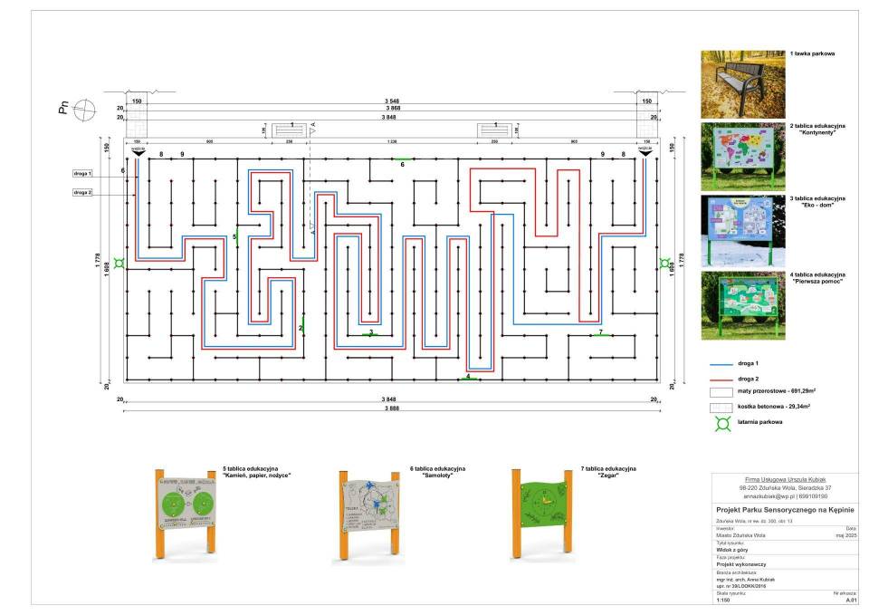 Projekt labiryntu wyróżnia się modularną konstrukcją – elementy wykonane zostaną z kompozytowych desek, odpornych na warunki atmosferyczne i przystosowanych do długotrwałej eksploatacji. System modułowy pozwala na łatwy montaż i demontaż poszczególnych paneli oraz swobodne modyfikowanie układu ścieżek. W praktyce oznacza to, że układ labiryntu będzie można co jakiś czas zmieniać, nadając mu nową formę i wprowadzając nowe wyzwania dla użytkowników.