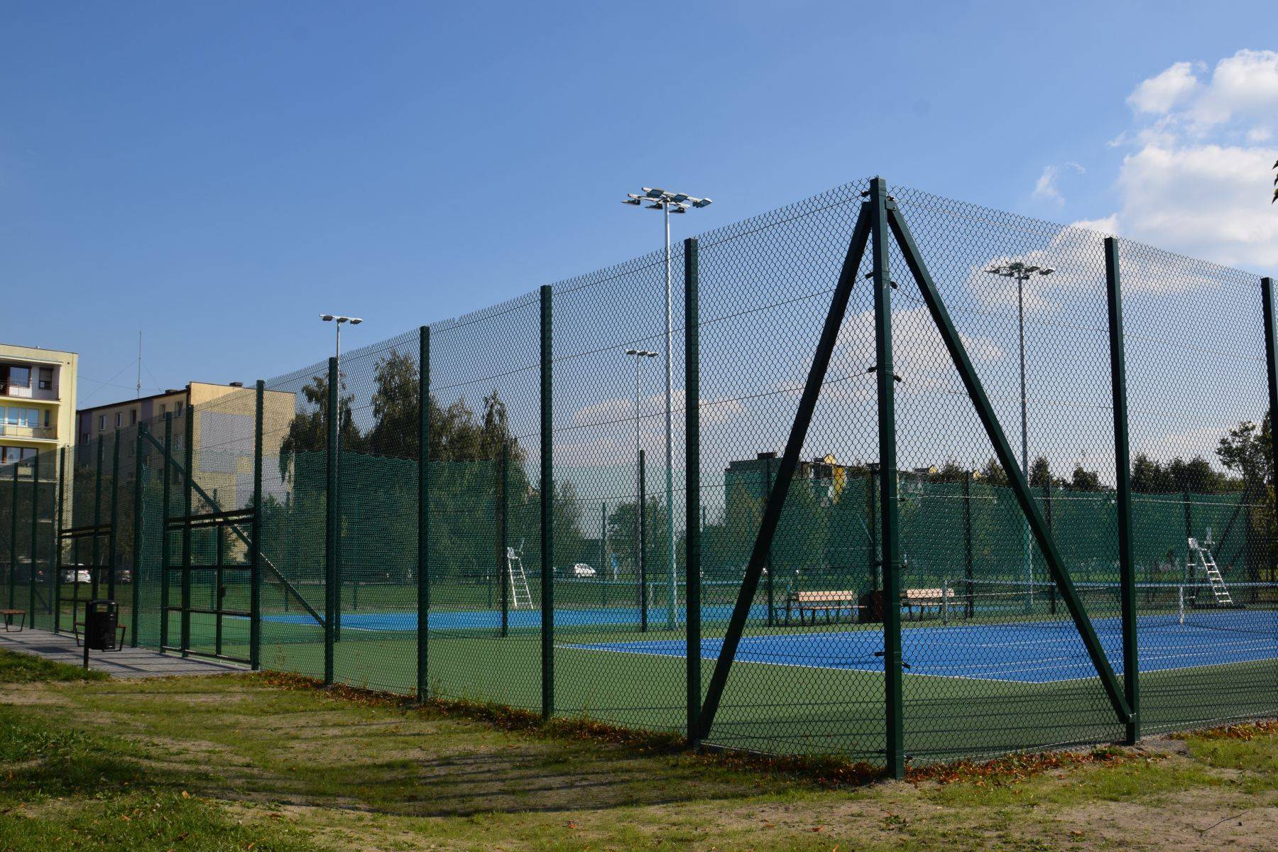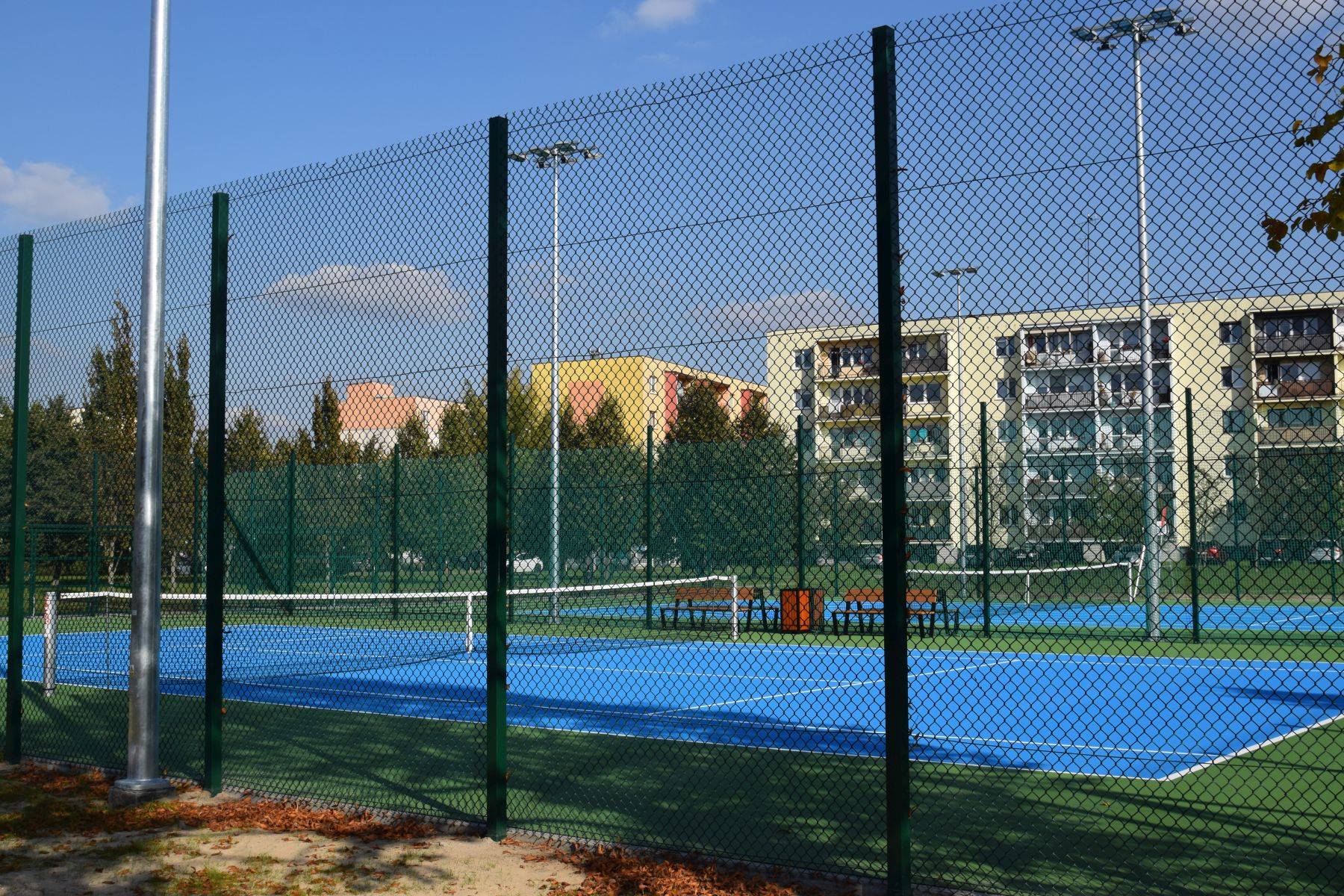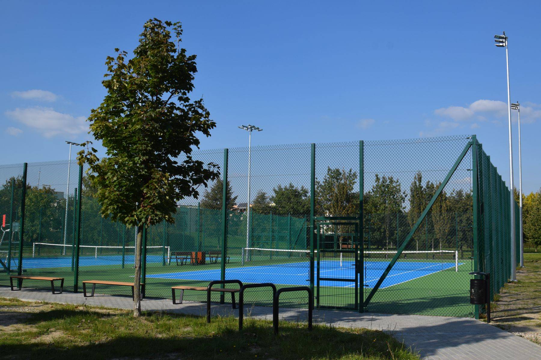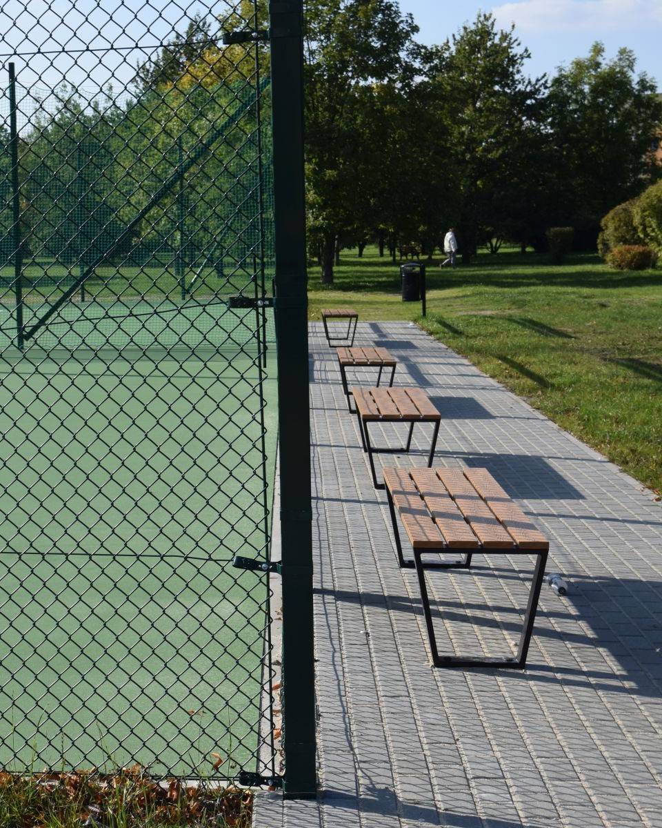 Nowe korty mają nawierzchnię akrylową w kolorach niebieskim i zielonym, są otoczone piłkochwytami, oświetlone oraz monitorowane. Wyposażono je także w elementy tzw. małej architektury – ławki, kosze, stojaki na rowery i stołki sędziowskie.