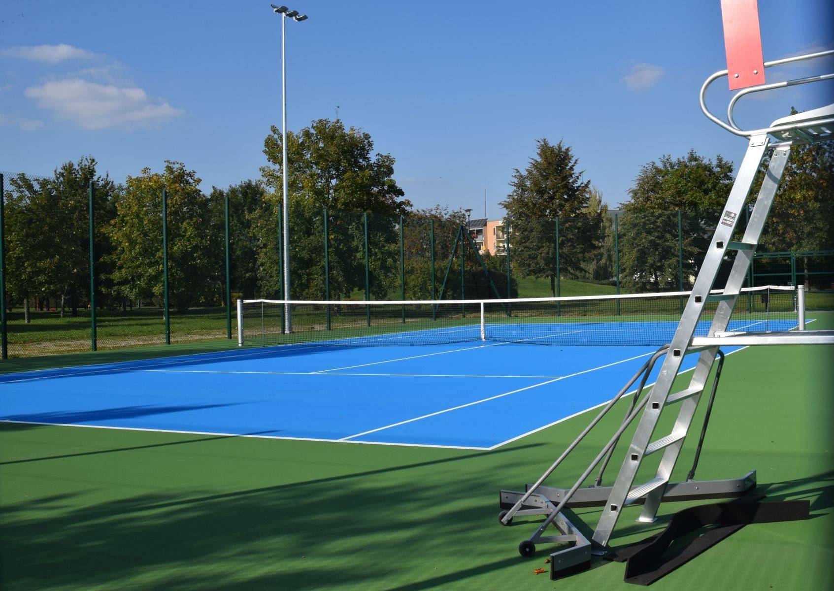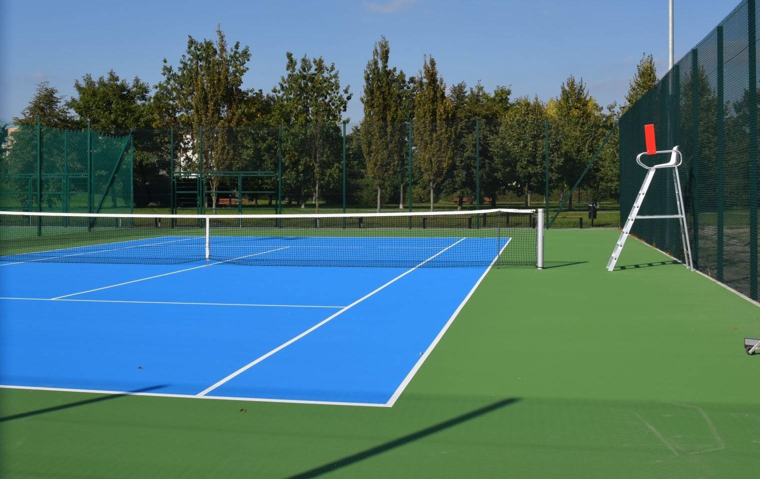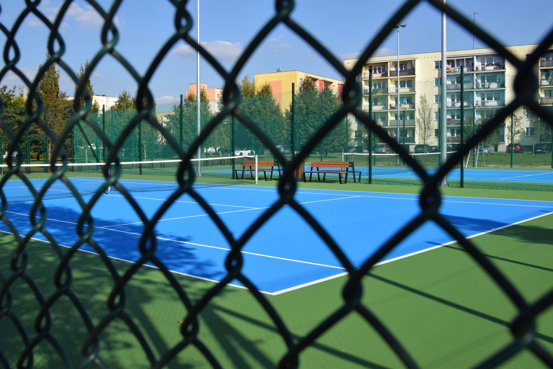 Nowe korty mają nawierzchnię akrylową w kolorach niebieskim i zielonym, są otoczone piłkochwytami, oświetlone oraz monitorowane. Wyposażono je także w elementy tzw. małej architektury – ławki, kosze, stojaki na rowery i stołki sędziowskie.