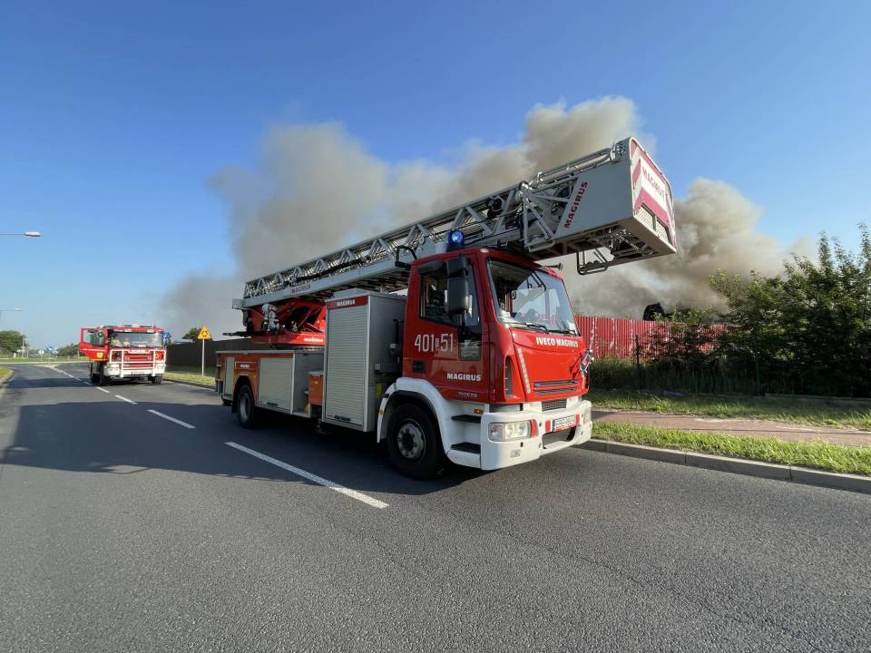 Obecnie działania strażaków koncentrują się na dotarciu do źródła ognia. Sytuację utrudnia zawalony dach hali, który uniemożliwia wejście ratowników do wnętrza budynku.